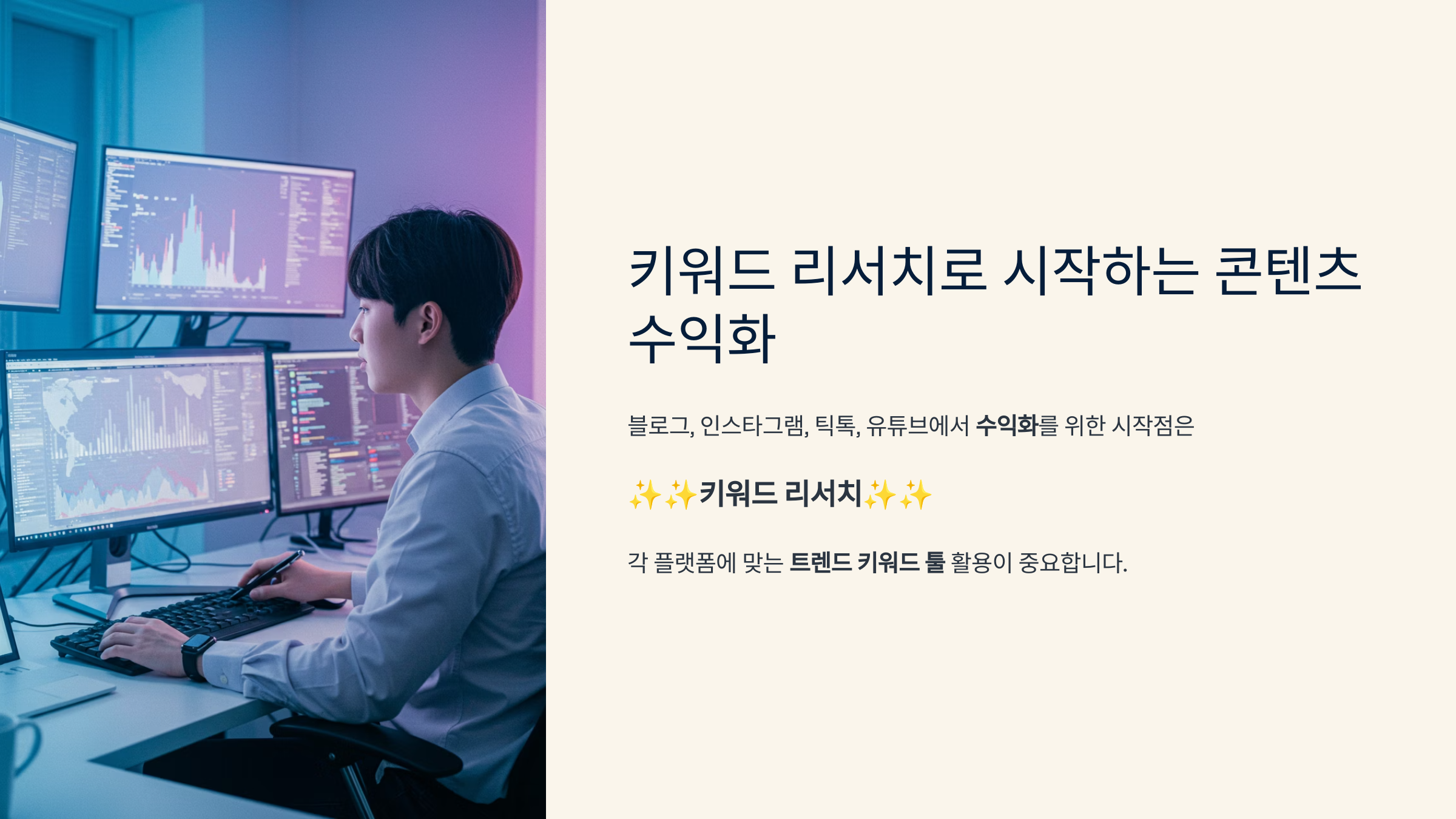 놀랍게도, 제대로 된 ‘키워드 하나’만 잘 잡아도 수익화의 문은 확 열립니다.