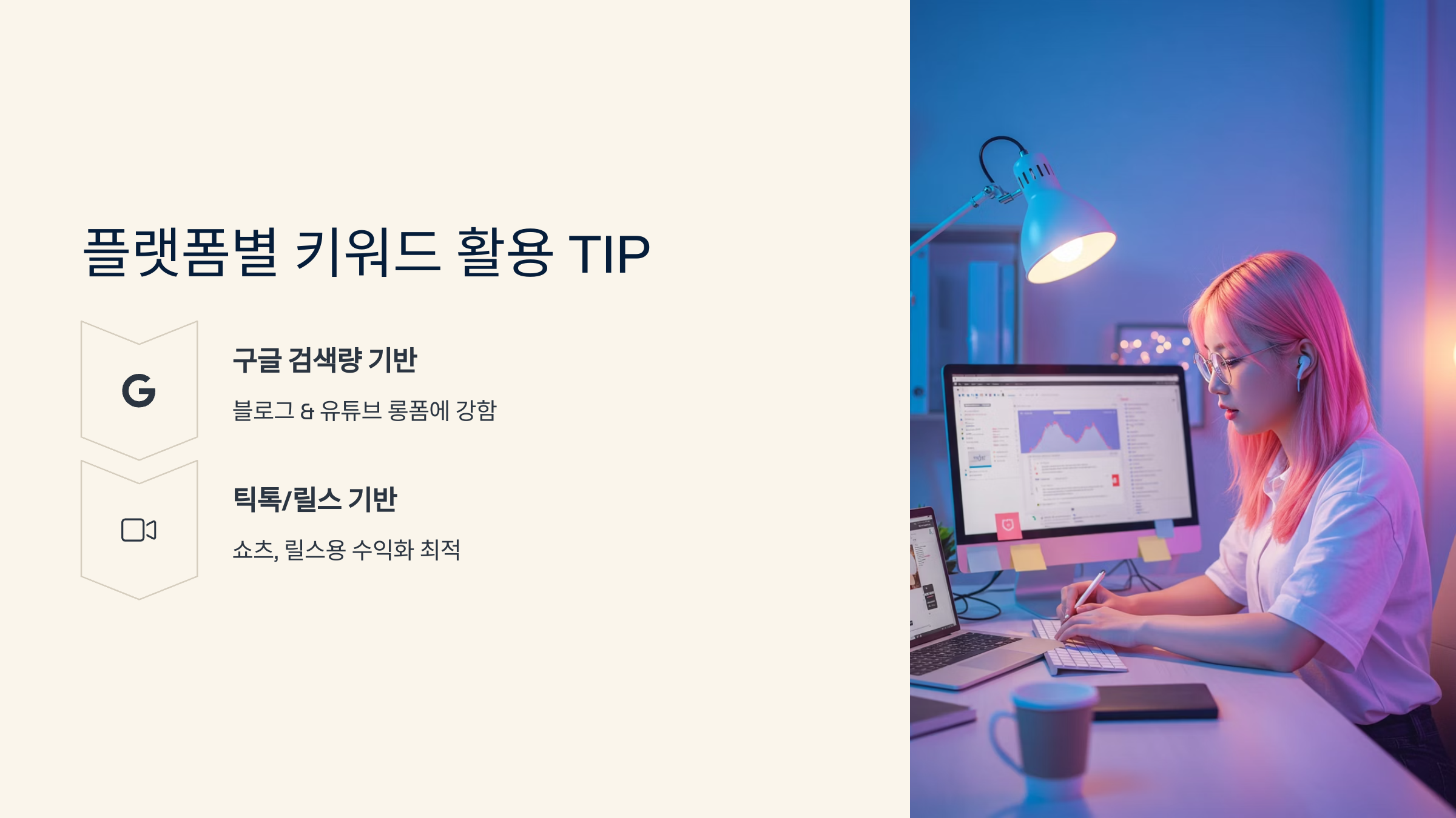 특히 블로그, 인스타, 틱톡, 유튜브처럼 콘텐츠 플랫폼은 ‘키워드=돈’이 되는 구조예요.