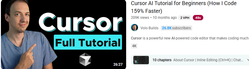 강좌: "Cursor AI Tutorial for Beginners [2025 Edition]" by Volo Builds